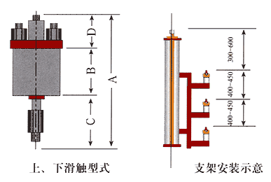 滑觸線三相豎放時,支架間距離為 | 滑觸線三相平放時,支架間距離為 | ||||||